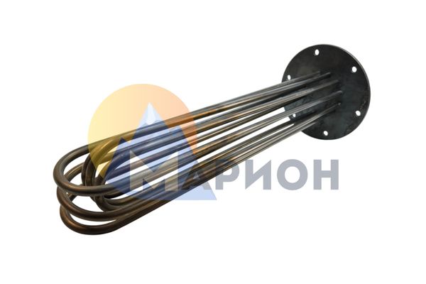 Длина ТЭН — 1100 мм, диаметр трубки — 10 мм. Мощность — 2 кВт, расчетное напряжение сети — 380 В. Подключение реализовано при помощи фланца из углеродистой стали.